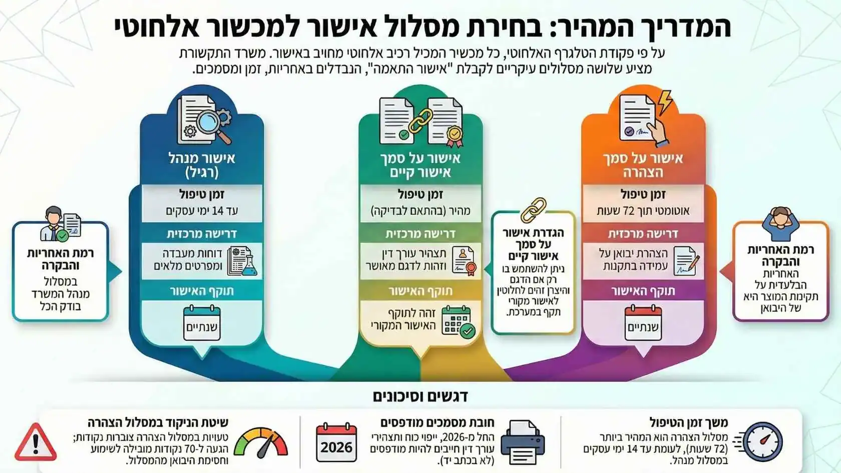 משרד התקשורת מעמיד לרשות היבואנים מספר נתיבים מרכזיים להשגת אישור זה, והכרת ההבדלים ביניהם היא מפתח לייעול תהליך הייבוא וקיצור זמני ההמתנה: