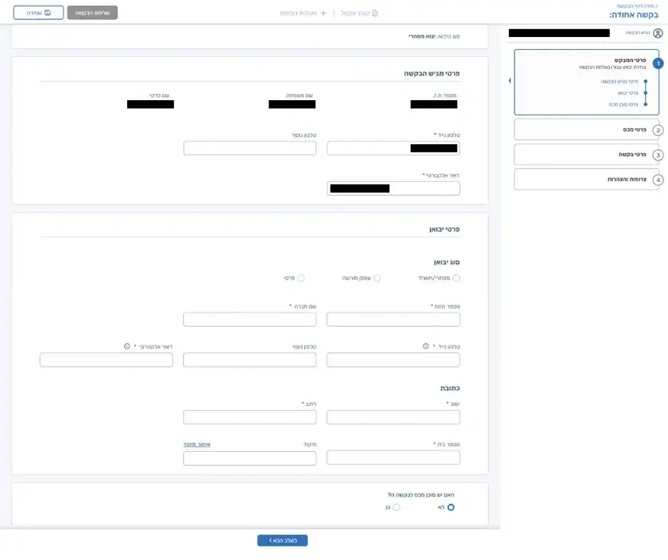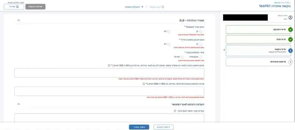 3. פתיחת בקשה במערכת מסלו"ל+